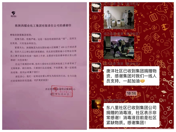 近日,不斷有雁塔、碑林、長(zhǎng)安、高新、未央等區(qū)域的各個(gè)社區(qū),向陜煤集團(tuán)送來感謝信,這不僅是社會(huì)群眾對(duì)陜煤志愿者們始終沖鋒在防疫一線的肯定,更是對(duì)陜煤集團(tuán)不斷伸出援手,奉獻(xiàn)愛心,認(rèn)真履行社會(huì)責(zé)任的鼓勵(lì)和支持。