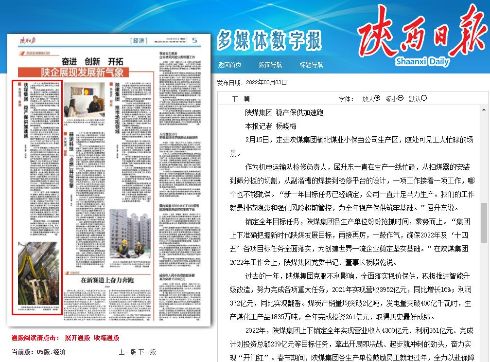 陜西日?qǐng)?bào) | ?陜煤集團(tuán)穩(wěn)產(chǎn)保供加速跑