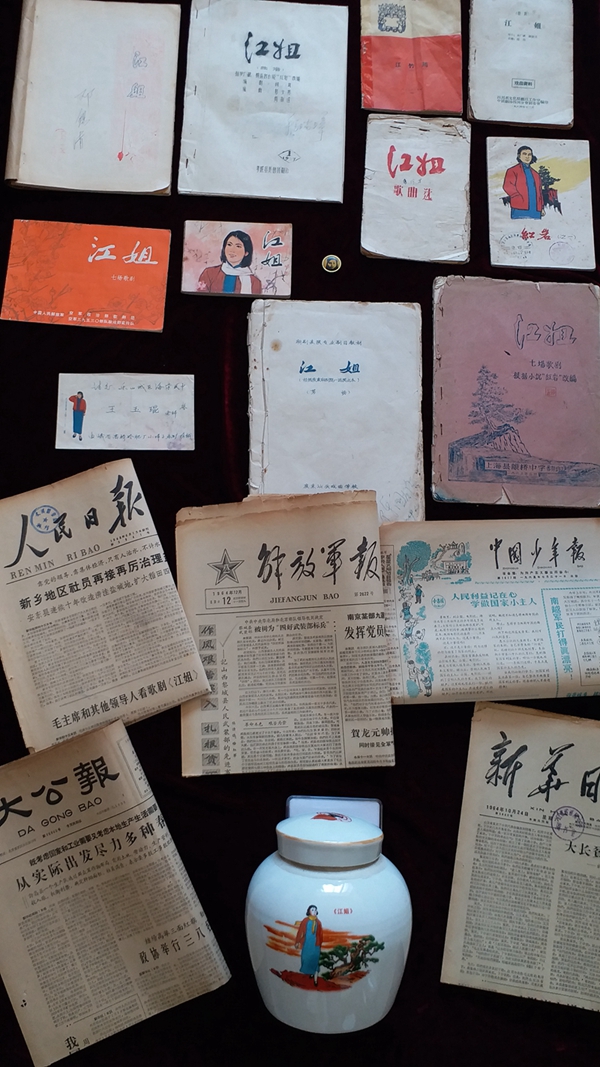 姜小平捐贈的這批關(guān)于江姐的文獻(xiàn)史料,是他10多年來潛心江姐專題收藏的全部藏品,包括目前發(fā)現(xiàn)最早講述江姐英雄事跡的單行本刊物;多種早期經(jīng)典版本的《江姐》連環(huán)畫;《人民日報》頭版刊發(fā)毛主席等黨和國家領(lǐng)導(dǎo)人觀看歌劇《江姐》并接見演員們的珍貴照片;上世紀(jì)六七十年代,全國各地各劇種編排的《江姐》油印本資料;關(guān)于電影江姐的早期大開海報;瓷都江西景德鎮(zhèn)制作的江姐肖像瓷器罐;《江姐》歌劇經(jīng)典唱片;重慶白公館制作的江姐紀(jì)念章等。