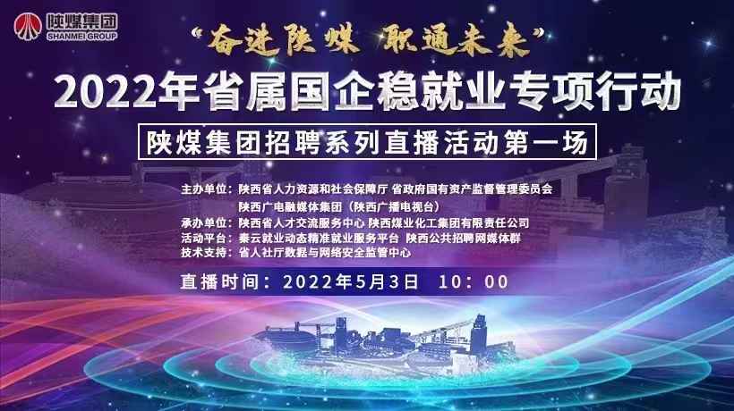 由陜西省人力資源和社會(huì)保障廳、陜西省國(guó)有資產(chǎn)監(jiān)督管理委員會(huì)、陜西廣電融媒體集團(tuán)(陜西廣播電視臺(tái))主辦,陜西煤業(yè)化工集團(tuán)有限責(zé)任公司、陜西省人才交流服務(wù)中心承辦的“陜煤集團(tuán)高校畢業(yè)生招聘周”活動(dòng)于4月29日正式啟動(dòng)。
