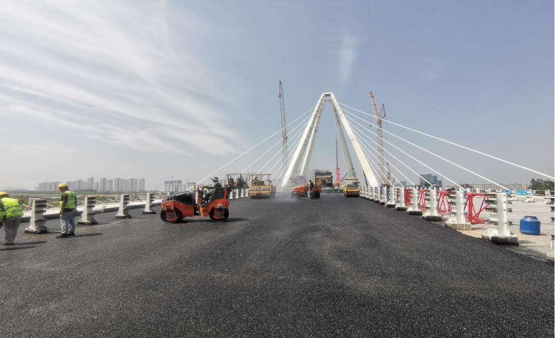 建設(shè)機械化高質(zhì)量完成咸陽高科一路跨渭河大橋路面施工任務(wù)