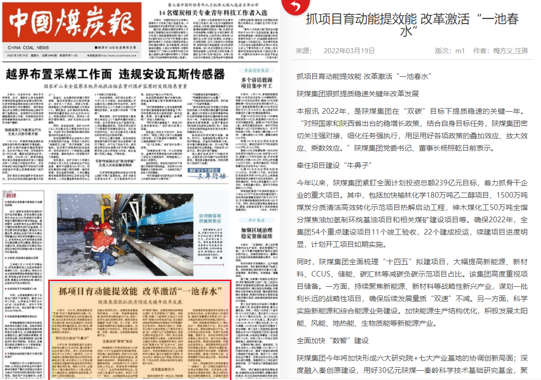 中國煤炭報| 陜煤集團狠抓提質穩(wěn)速關鍵年改革發(fā)展